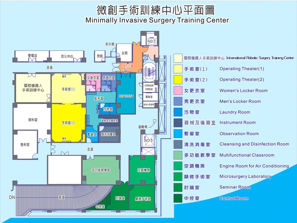 中心的設施如下,可為外科、婦產科、骨科、泌尿科、眼科、耳鼻喉科等外科系的醫師,提供不同的微創手術訓練環境,藉由重複的練習,以提升醫師技術水準,保障病人安全,另亦可提供內科系醫師內視鏡操作的練習環境。