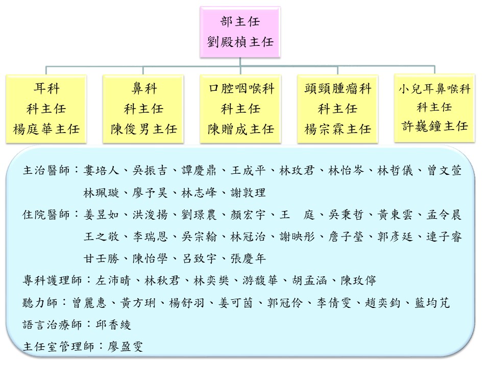 耳科科主任:楊庭華醫師 鼻科科主任:陳俊男醫師