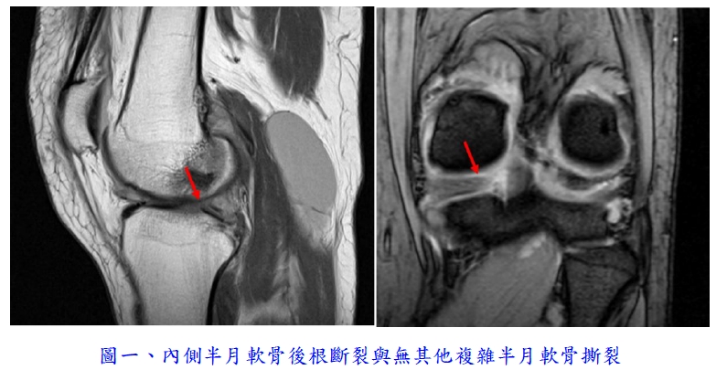 如年輕或運動需求大的病患,常見十字韌帶斷裂或半月軟骨撕裂,通常即便經過保守治療,仍容易出現後續症狀甚至二次傷害,建議及早轉介處理。前十字韌帶斷裂通常需重建新的韌帶,半月軟骨撕裂則需要進行關節鏡手術縫合。中年病患方面,若無明顯受傷史,但在日常生活中突發嚴重膝蓋疼痛,且X光結果未有嚴重退化、經過保守治療仍未改善者,通常可能是半月軟骨後根撕裂,也建議盡早轉介至醫院,及早接受關節鏡修補手術,可延緩膝關節退化、降低未來人工關節置換和骨壞死的機率,並改善生活功能(圖一)。