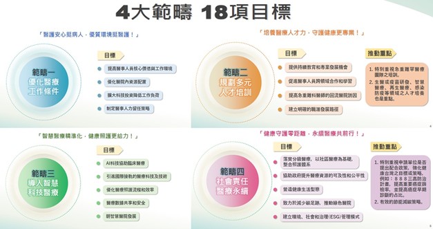 本院今年正式通過衛福部「健康台灣深耕計畫(2025-2029)」,計畫涵蓋四大範疇: