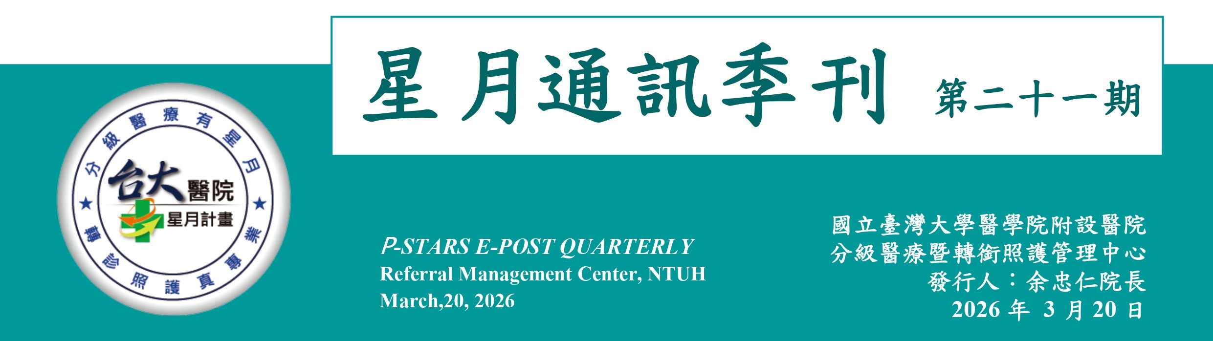 本院分級醫療暨轉銜照護管理中心(下稱本中心)2025年10月19日於臺大醫院西址第七講堂舉辦「2025星月七周年年會」,由本院黃國晉副院長親自蒞臨並進行頒獎。