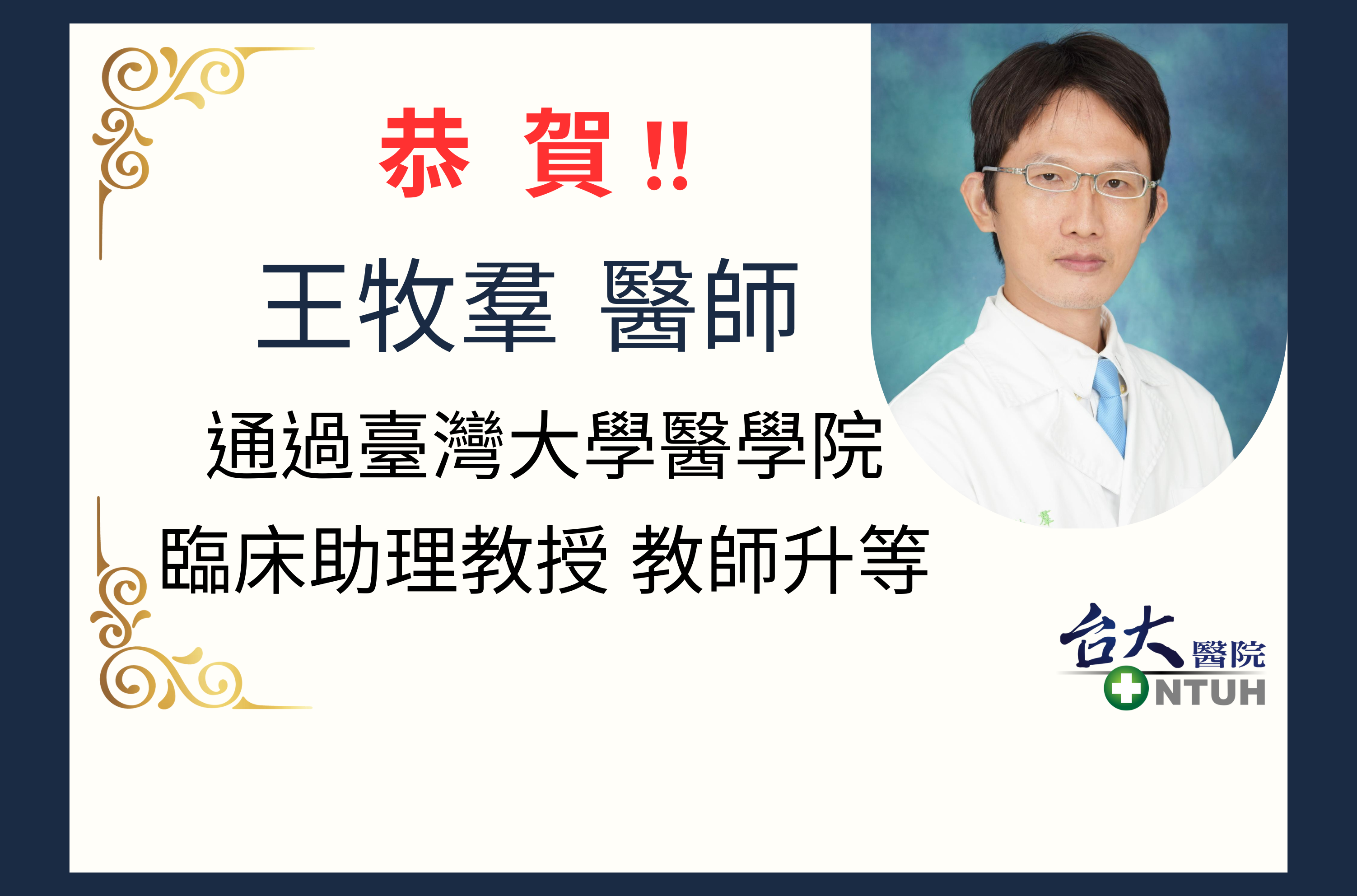 恭賀王牧羣醫師通過臺灣大學醫學院臨床助理教授 教師升等