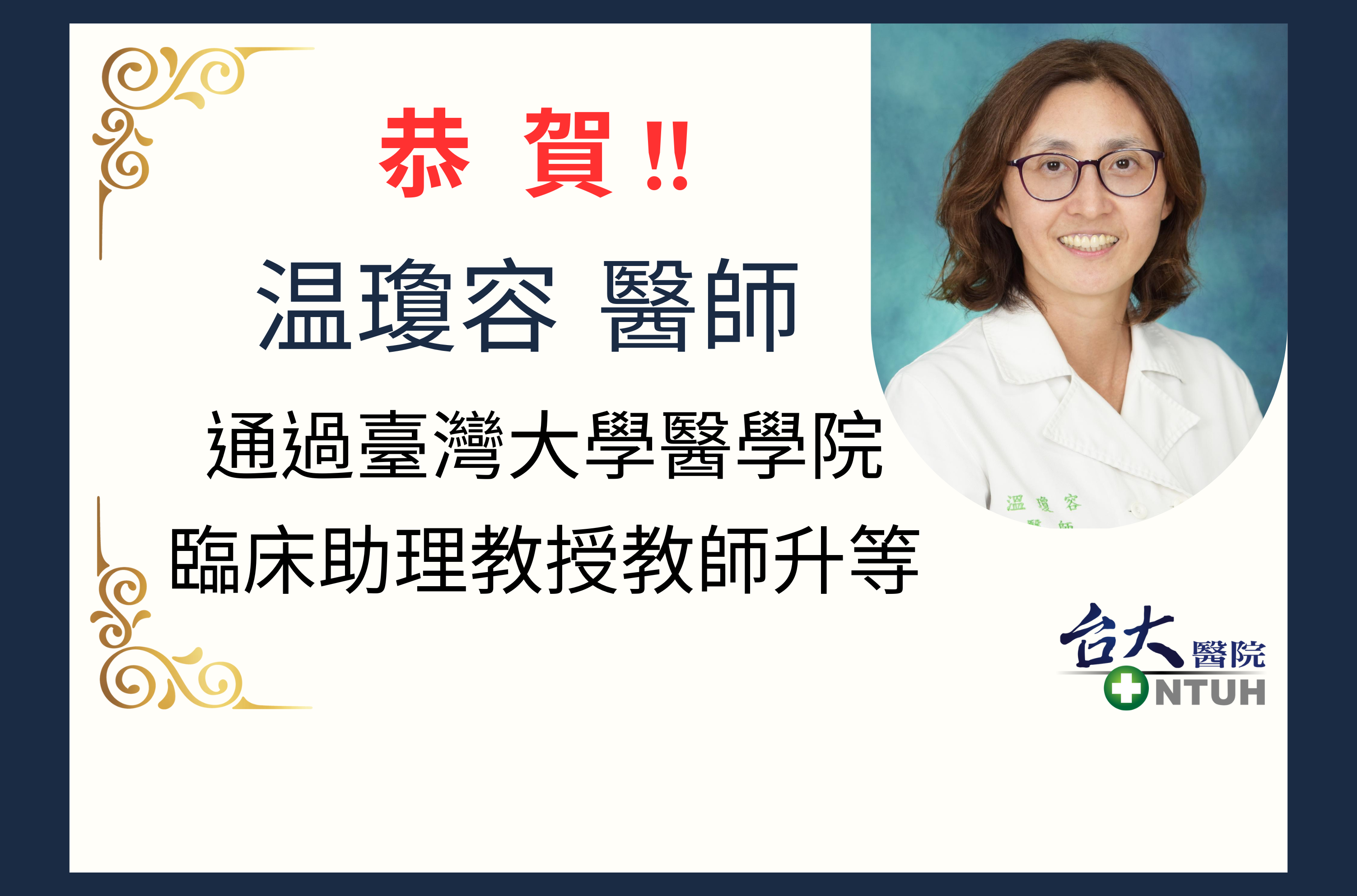 恭賀!! 温瓊容醫師通過臺灣大學醫學院臨床助理教授教師升等
