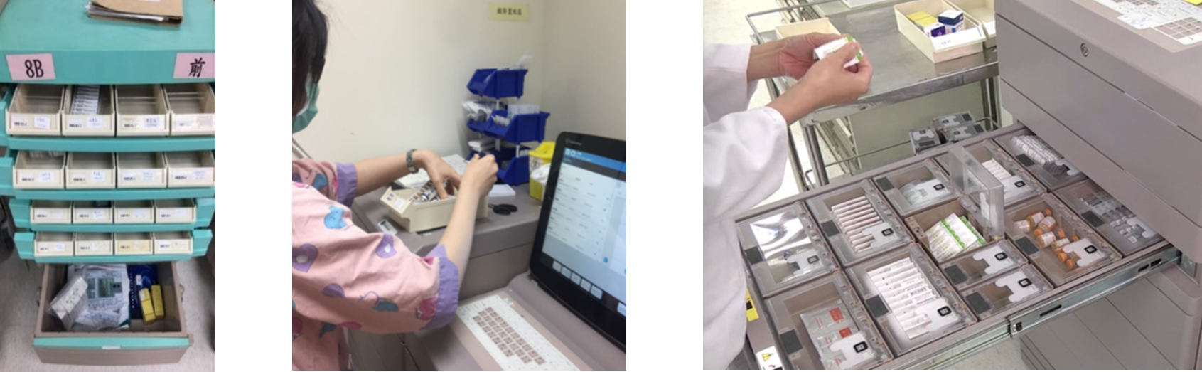 本院住院病人藥品供應採每日單一劑量方式(UDD)配送,處方異動頻繁以致有30%退藥量;依現行藥品配送作業,醫師開立處方後,由人力傳送藥品至病房,期間如有急用,病房頻繁催找藥品,不僅干擾線上醫療作業也衍生額外人力成本。為達成閉環式藥品管理系統(closed-loop medication management),保障病人用藥安全,引進存放於醫療單位的智慧藥櫃,改善藥品取得之即時性與正確性,減少非必要之調劑及退藥。